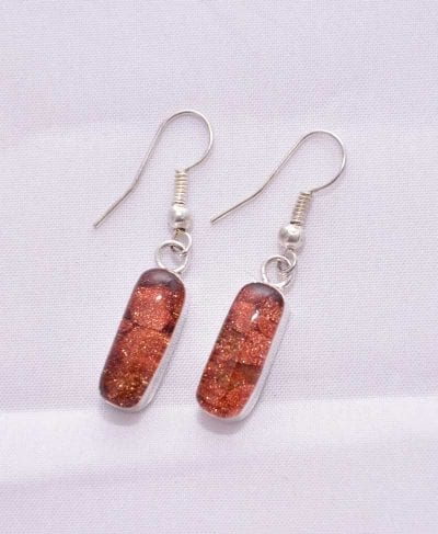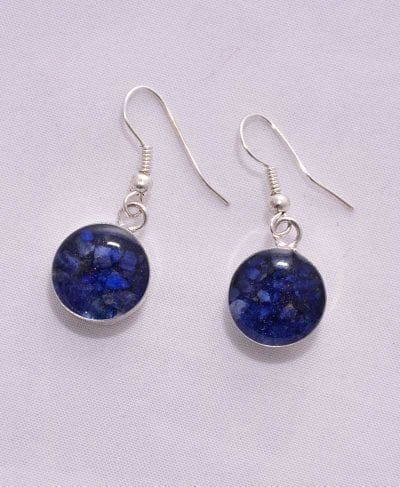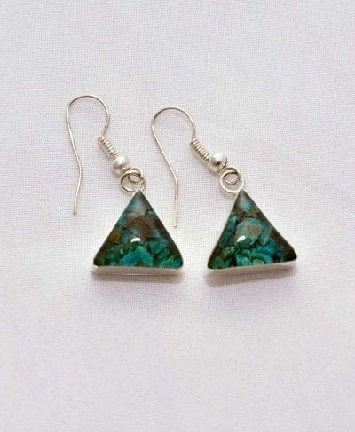 These earrings are made by artisans in Peru. They are of various geometric figures with semi-precious stone inside.