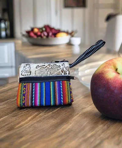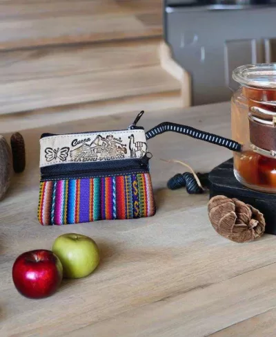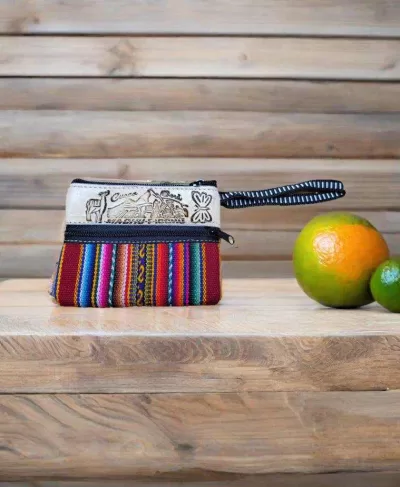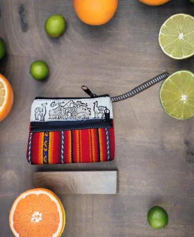 Ce magnifique porte-monnaie en cuir et en tissu traditionnel péruvien vous donnera de la couleur à votre journée!